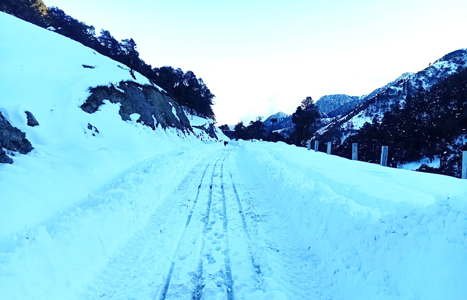 ढोरपाटन (बागलुङ), माघ १४ - मङ्गलबार रातिदेखिको वर्षासँगै भएको हिमपातले मध्यपहाडी लोकमार्ग पूर्ण रुपम