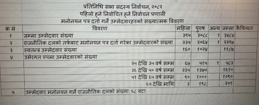 देशभर प्रतिनिधिसभा निर्वाचन : १६५ सिटका लागि ३४८४ जनाको मनोनयन दर्ता