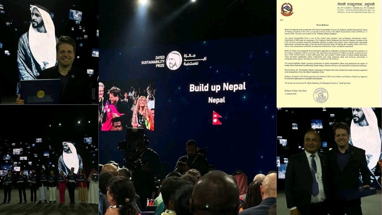‘बिल्ड अप नेपाल’लाई २०२६ को जायेद दिगोपन पुरस्कार, जलवायु कार्य क्षेत्रमा अन्तर्राष्ट्रिय सम्मान