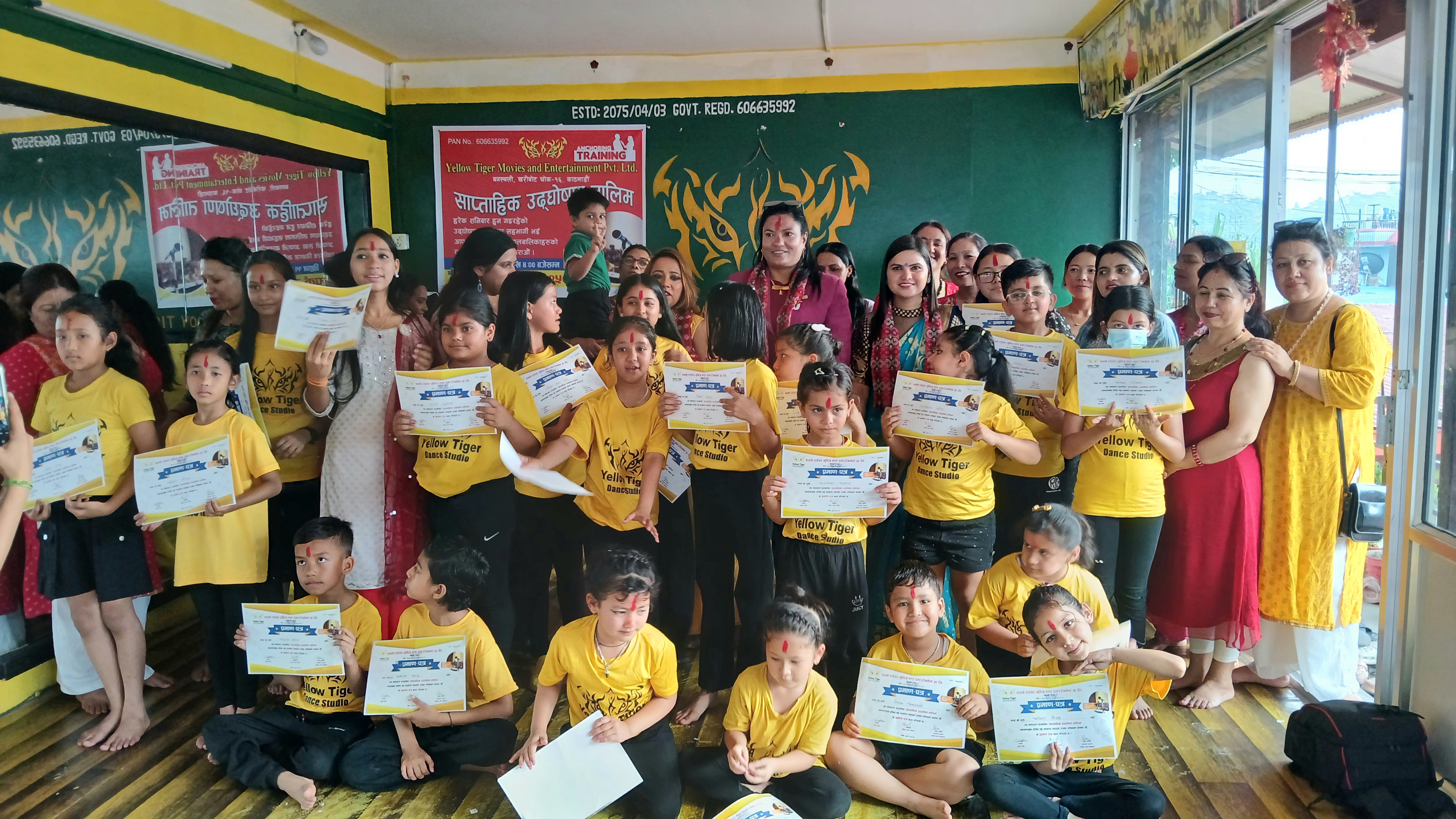 काठमाडौ ।यल्लो टाइगर खरीबोट बनस्थलीले साप्ताहिक उद्घोषण तालिमको आज समापन गरेकोछ।१५ बर्ष उमेर समुह भित्रका बिद्यार्थीहरुको लागि एक महीनादेखि तालिम सन्चालन गर्दै आएको थियो।प्रत्येक शनिवार ११ बजेदेखी ४ बजेसम्म संचालित सो कार्यक्रमको प्रशिक्षक सन्चार्कर्मी बिष्णुमाया पौडेल थिइन ।उनले बिद्यार्थीहरुको मनोबिज्ञान बुझेर अध्यापन गराएकोले छोटो समय भित्र सहभागीहरुले खरर बोल्न थालेकाछ्न।३० जना बिद्यार्थीहरुले सक्रियपुर्बक उद्घोषण कार्यक्रममा सहभागी भएका थिए। आज चौथो हप्तामा प्रमाणपत्र समेत बुझेका बिद्यार्थी अत्यन्त खुशी देखिन्थे।आफ्ना छोराछोरीमा सकारात्मक परिबर्तन सहित आत्मबिश्वास बढेको देखेपछि अभिभावक हरु खुशीले दङ्ग देखिन्थे। यसै अबसरमा यल्लो टाइगरकि अध्यक्ष सुस्मा सिंहले नेपालकै पहिलो महिला रेस्लर भगवती खड्का र प्रशिक्षक बिष्णु माया पौडेललाइ सम्मान गरेकि थिइन।रेस्लर खड्काले ५ हजार ६ सय अग्लो कालापत्थरमा रेस्लिङ सन्चालन गरि अमेरीकि खेलाडीलाई पराजित गरि नेपालको नाम राखेकी थिइन्।उनले गिनिज बुकमा नाम लेख्ने अन्तिम तयारी समेत गरेकि छिन ।उनी आजको प्रमुख अतिथी समेत थिइन् ।प्रशिक्षक बिष्णुमाया पौडेलले पनि भगवती खड्कालाई उज्ज्वल भबिस्यको कामना गर्दै आम महिलाहरुको आत्माबिश्वास बढाउने कार्यको खुलेर प्रसम्सा गरेकी थिइन् ।पुन:यल्लो टाइगरले उद्घोषण तालिम सन्चालन गर्ने बताएकोछ।मात्र ३० जना मात्र सहभागी गराउने उद्घोषण तालिममा भर्ना आजैदेखि खुल्ला गरेको अध्यक्ष शुस्मा सिंहले जानकारी दिइन।