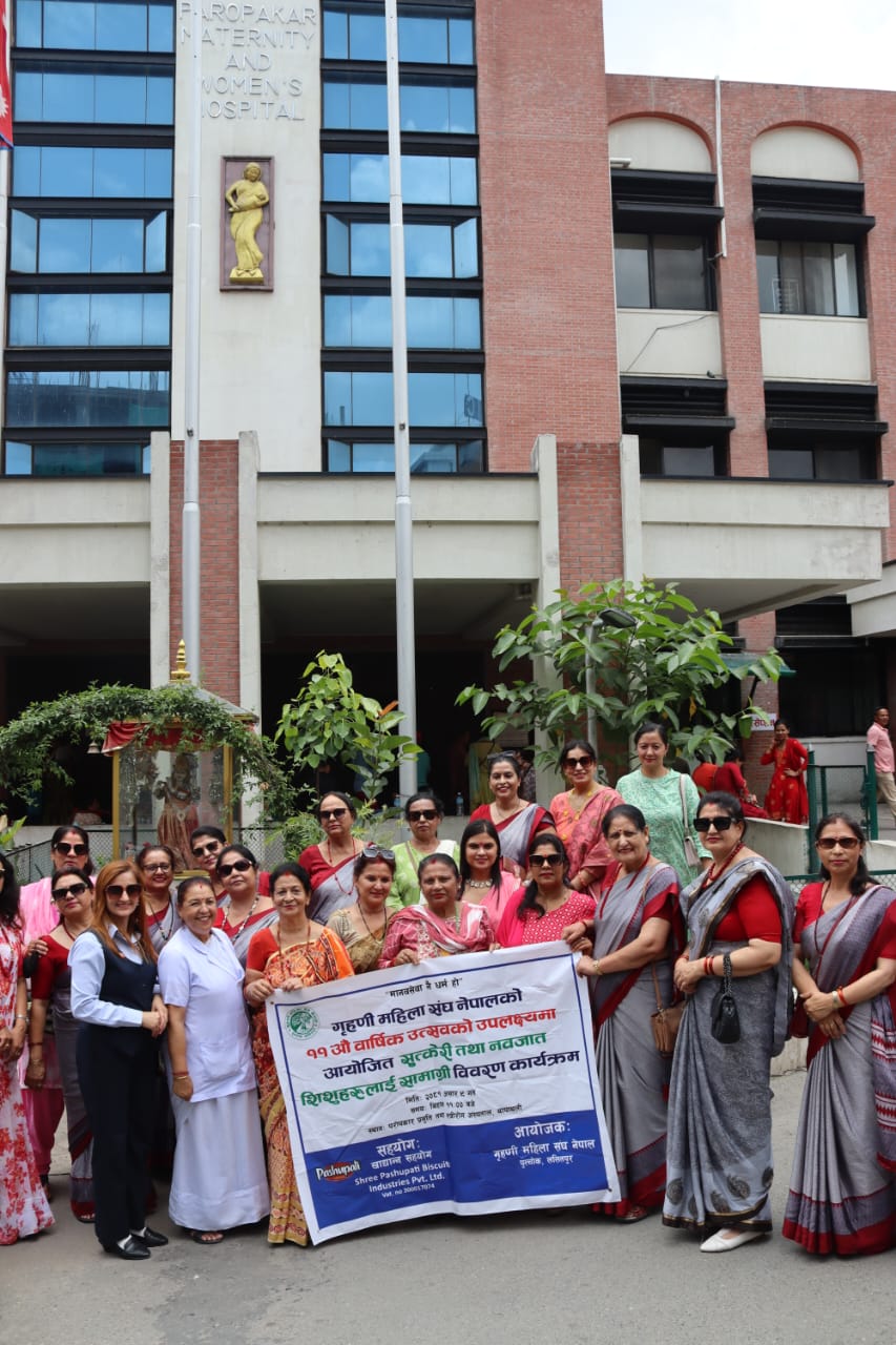 काठमाडौ ।गृहिणी महिला संघ नेपालले आज आइतबार थापाथली प्रस्तुती गृहमा ७५ सुत्केरी तथा सिसुहरुलाइ स्वास्थ्य सामाग्री ,लत्ताकपडा तथा पोस्टिक आहार बितरण गरेकोछ।सस्थाको एघारौं बार्सिक उत्सबको उपलक्ष्यमा सस्थाकी केन्द्रिय अध्यक्षको नेतृत्वमा अस्पताल पुगेको केन्द्रिय पदाधिकारीहरुको टिमले बेडमै पुगेर आबश्यक सामाग्री बितरण गरेको हो। थापाथली प्रस्तुती गृहका निर्देशक श्रीप्रसाद अधिकारीले गृहिणी संघ नेपालको यस्तो परोपकारी भावनाको उच्च कदर गर्दै खुशी व्यक्त गर्नु भयो।निम्न बर्गिय परिवारमा लक्ष्यित गरि प्रस्तुति गृह छनोट गरि हातेमालो गर्ने अबसर पाएकोमा अस्पतालका उप-प्रमुख डा.सन्देश पौडेलले आफुहरु सामाजिक कार्यमा सधै हातेमालो गरिरहने बिश्वास ब्यक्त गर्नु भयो। डा.कस्तुरी मल्ल र अस्पताल नर्सिङ इन्चार्ज इन्दिरा ढुङ्गेलको पहलमा अस्पताल र गृहिणी संघको बिचमा सहकार्यको अनुकूल बाताबरण सिर्जना गर्नु भएको थियो।पशुपति बिस्कुटले खाद्य सामाग्री उपलब्ध गराएको थियो।समाजसेबी विशाल भण्डारी र आजिबन सदस्यहरुले पुराउनु भएको सहयोग प्रती सस्थाकी अध्यक्ष अमृता शर्माले स-धन्यवाद सहित आभार व्यक्त गर्नु भयो।