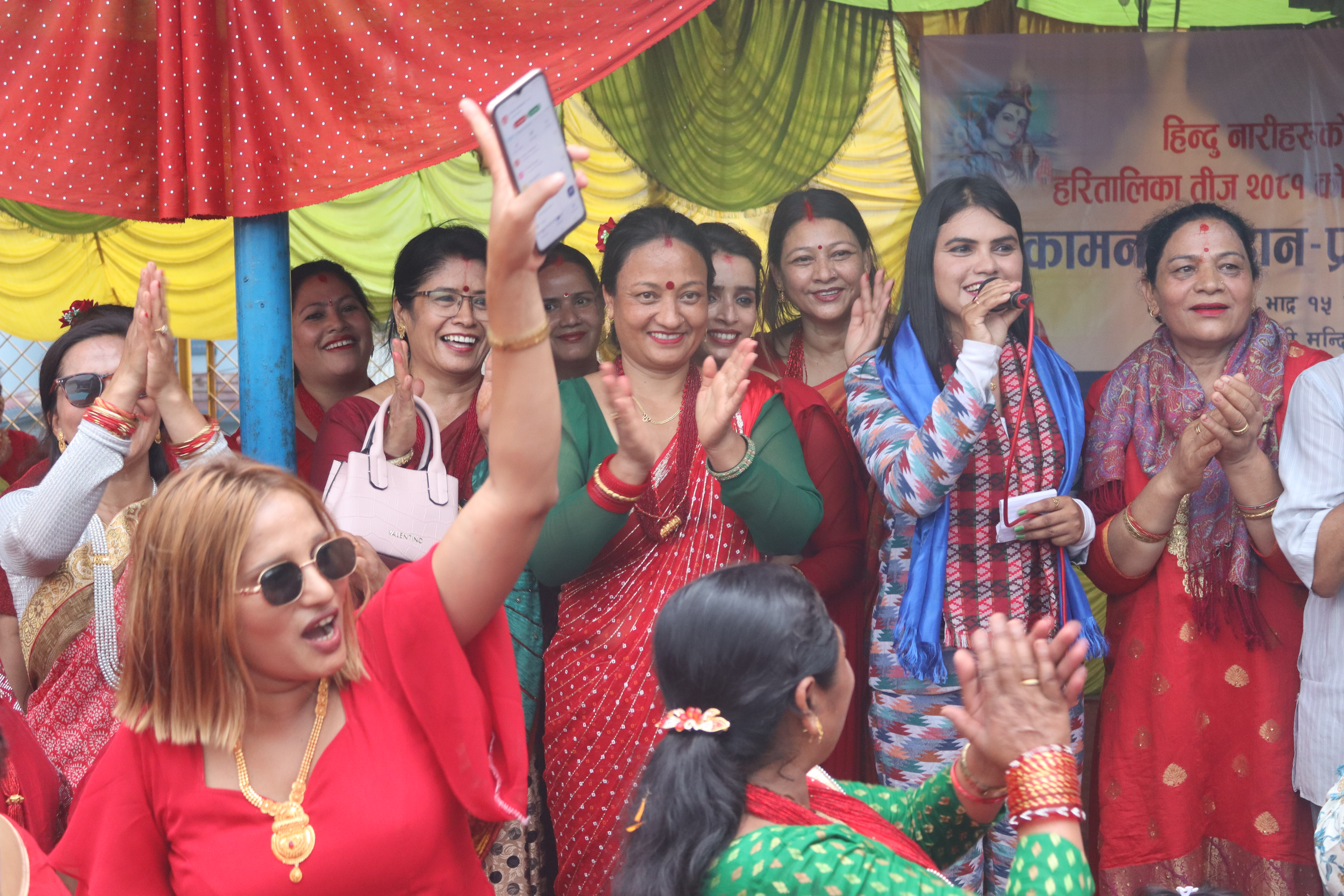 ए दिदी ए बैना, गित गाउने बितिकै यसै बर्ष निक्कै चर्चामा रहेको तीज गित "साथी"गायिका बिष्णु माया पौडेलले गाएकी थिइन् भने सबै जना गितमा सुन्दर नृत्य गरिरहेका थिए।साथि गित सकिए लगत्तै अब एक छिन बस्ने कि गित गाउने भनेर गायिकाले सोधेपछि एक स्वरमा अझै नाच्न पुगेन भनेपछि अघिल्लो सालको गित "शिव मेरो बोश"गाएर पौडेलले तृप्त पारेपछि उनिसग फोटो खिच्नेको भिड लागेको थियो।आजको कार्यक्रम अत्यन्त सब्य भब्य ब्यबस्थापन गरिएको थियो। कार्यक्रमको सम्योजक सरस्वतीनगर सुधार संघको उपाध्यक्ष सावित्री खड्का,सरस्वतीनगर सुधार संघ सह-कोषाध्यक्ष तुलासा गौतमको ब्यबस्थापनको सबैले खुलेर प्रशम्सा गरेका थिए।सरस्वतीनगर सुधार संघको अध्यक्ष पेशलकुमार पहाडी कार्यक्रम सुरुबात भएदेखि सप्पन्न नहुनेजेल सम्म दिदिबहिनीहरुको खुसीमा केही कमि नहोस् भनेर खटिरहेका थिए।स्वास्थ्य टोलि कसैको स्वास्थ समस्या नआवोस भनेर खटिएका थिए भने,,त्यस क्षेत्रमा शान्ति सुरक्षामा कुनै कमि नहोस भनेर इन्स्पेक्टर नेत्र कुवर कार्यक्रम स्थलमा खटिएर सबैमा हौसला थपेका थिए।