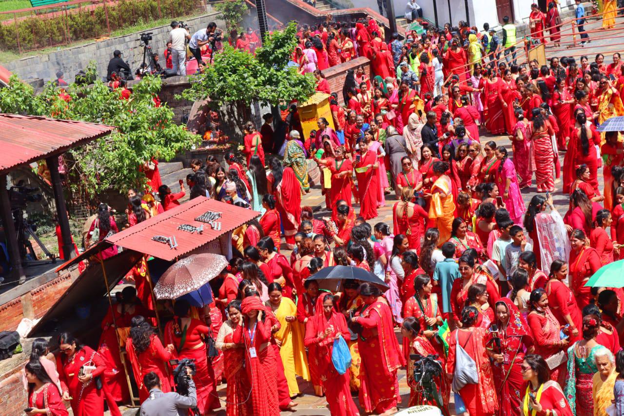 २१ भदौ काठमाडौ ।नेपाली सनातन हिन्दूहरुको महान चाड हरितालिका तीज आज धुमधामसग मनाइयो।देशैभरीका सबै शिबालयमा नारिहरुको भिड देखिन्थ्यो ।