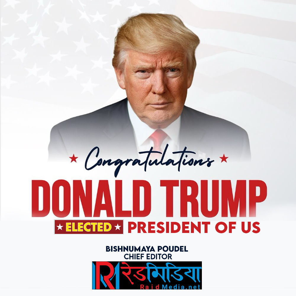 २१ कात्तिक, काठमाडौं । अमेरिकाको ४७ औं राष्ट्रपतिमा रिपब्लिकन उम्मेदवार डोनाल्ड ट्रम्प निर्वाचित भएका छन् ।
