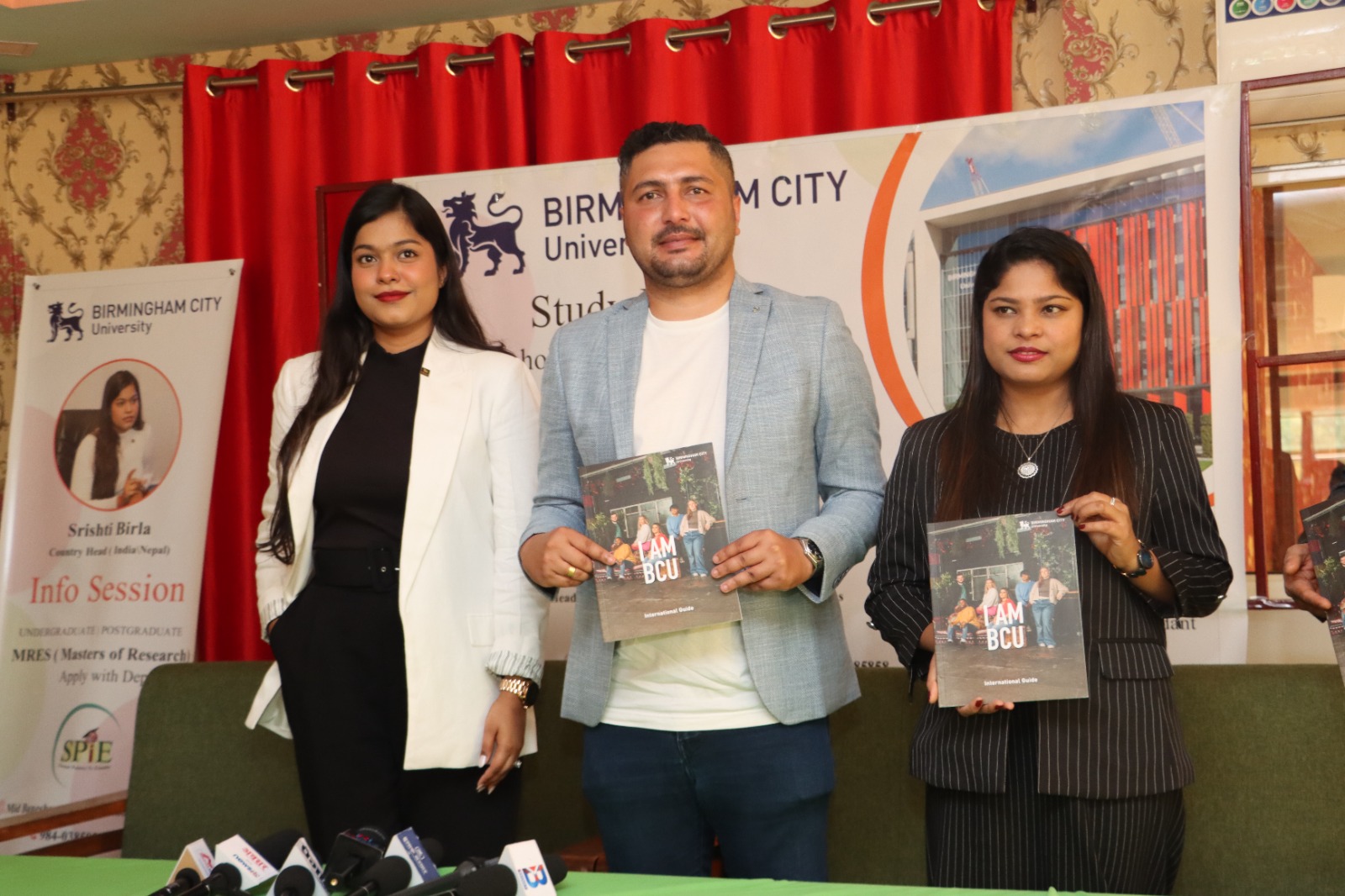 काठमाडौँ, नेपाल – स्पाई ओभरसिज र बर्मिङ्घम सिटी युनिभर्सिटी (BCU) को संयुक्त आयोजनामा बौद्धनगरस्थित आरम्भ रेस्टुरेन्ट एण्ड बारमा प्रेस मिट सम्पन्न भयो। कार्यक्रममा नेपाली विद्यार्थीहरूका लागि बेलायतमा अध्ययन गर्न पाइने विशेष छात्रवृत्ति अवसरबारे जानकारी प्रदान गरियो।