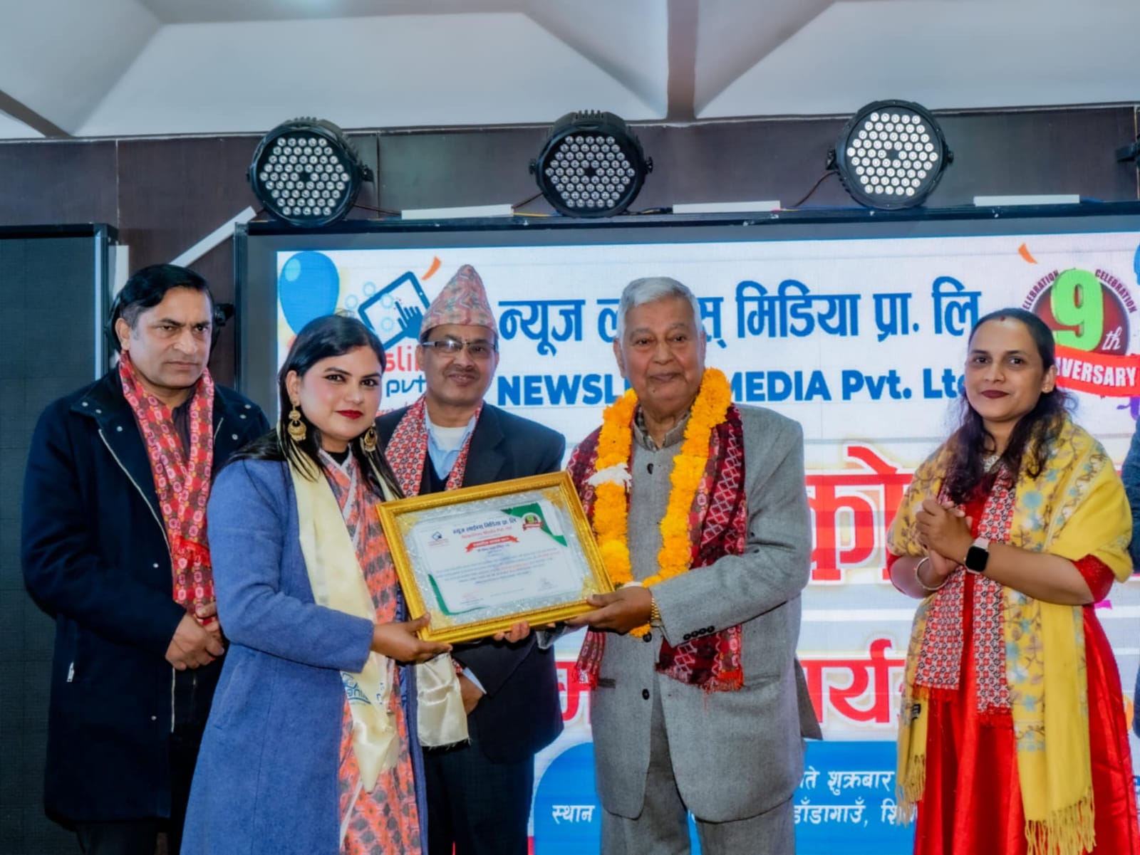 न्युज लाइन्स मिडिया प्रालीको नवौं बार्षिक उत्सबको उपलक्ष्यमा पत्रकारिताको माध्यमबाट समाजमा पुर्याएको योगदानको उच्च मुल्यांकन गर्दै सम्मान गरिएको सोहि सस्थाकी अध्यक्ष रिता ढकालले बताइन् ।