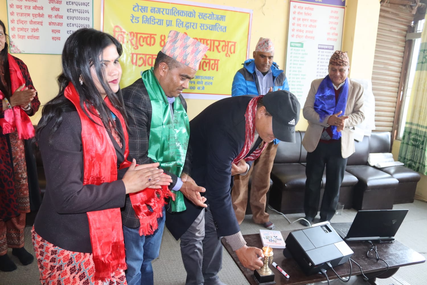 टोखा नगरपालिकाका मेयर प्रकाश अधिकारीको प्रमुख आतिथ्यतामा संचालित पत्रकारिता तालीमको पानसमा दिप प्रज्वलन गरेर समुद्घाटन गरिएको थियो।