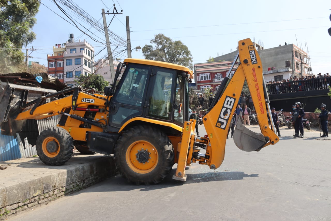 गुठी संस्थान, वडा कार्यालय, नेपाल प्रहरी, महानगर प्रहरी, तथा स्थानीय प्रशासनको संयुक्त टोली बिहान ११ बजे डोजरसहित अतिक्रमण हटाउन पुगेका थिए। प्रहरीले जग्गा खाली गर्न अतिक्रमणकारीहरूलाई पटक–पटक चेतावनी दिएको थियो, तर उनीहरूले अटेर गर्दै महानगरपालिकाको डोजरमाथि आक्रमण गरे। आक्रमणका क्रममा डोजर चालक घाइते भए भने डोजरको सिसा फुट्यो।
