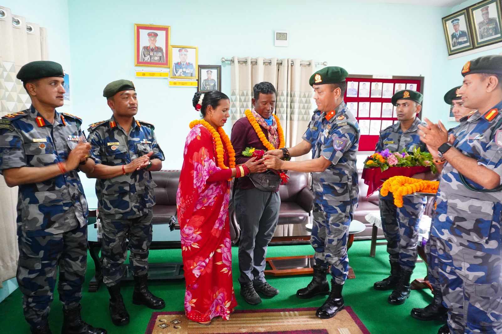 काठमाडौं, जेठ ७ —विश्वको सर्वोच्च शिखर सगरमाथाको सफल आरोहण गरी फिर्ता भएका सशस्त्र प्रहरी नायव निरीक्षक दन्त बहादुर छत्याललाई आज काठमाडौंमा एक विशेष कार्यक्रमका बीच भव्य स्वागत गरिएको छ।