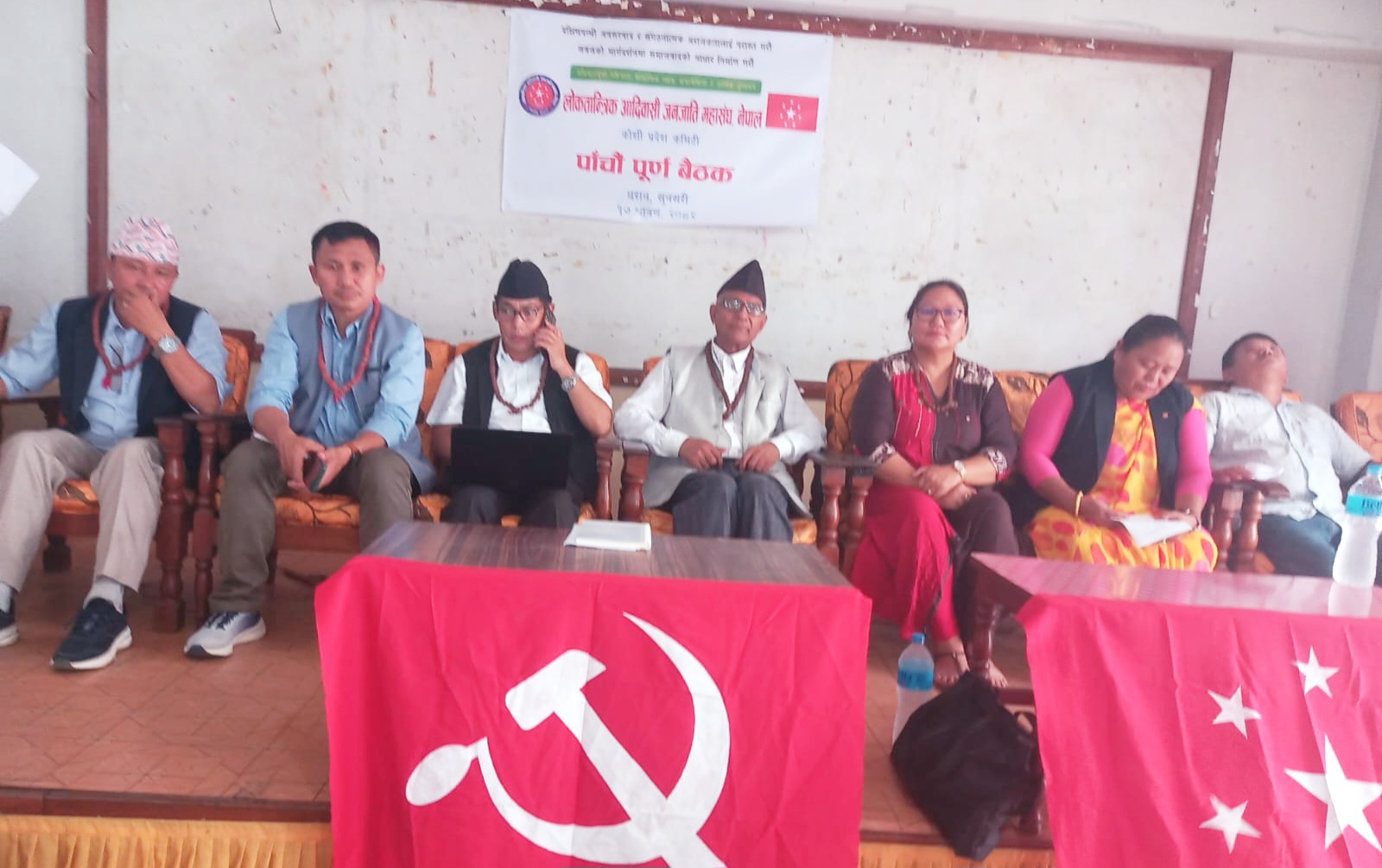 धरान, श्रावण १७ — लोकतान्त्रिक आदिवासी जनजाति महासङ्घ कोशी प्रदेश कमिटीको पाँचौं पूर्ण बैठक आज धरानमा सम्पन्न भएको छ। बैठक हरिथलङ राईको अध्यक्षतामा र एमाले कोशी प्रदेश कमिटी अध्यक्ष घनश्याम खतिवडाको प्रमुख आतिथ्यतामा सम्पन्न भएको हो।