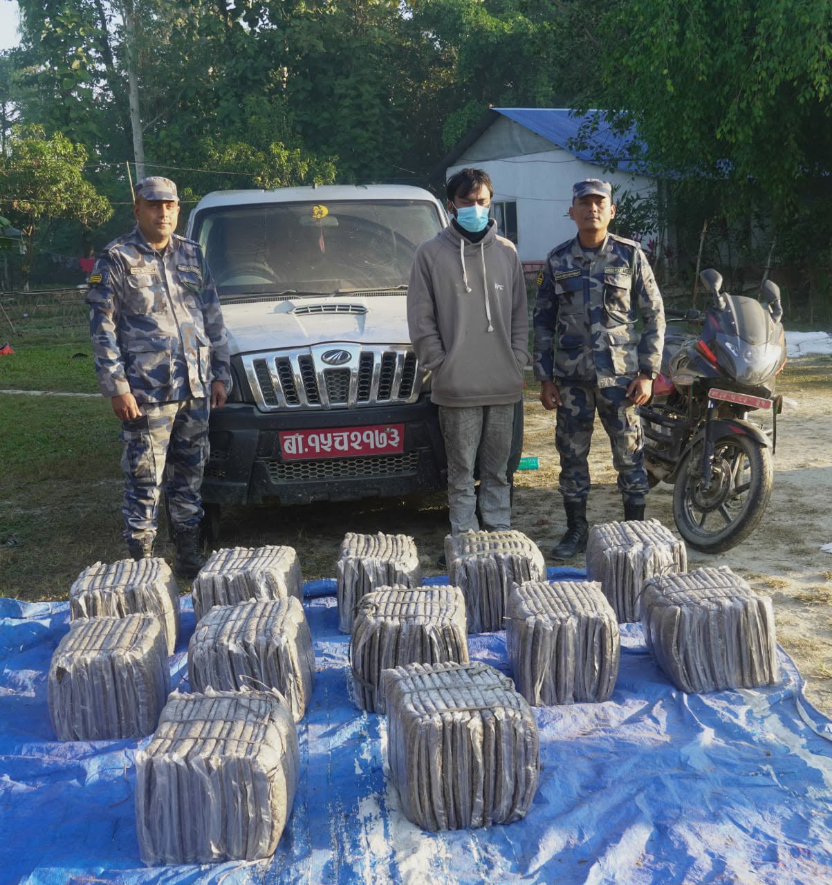 नियन्त्रणमा परेका २० वर्षीय आदित्य चौधरी स्कारपियोका चालक रहेको खुलिएको छ भने मोटरसाइकल चालक फरार रहेको प्रहरीले जनाएको छ। चौधरीलाई बरामद गाँजा, स्कारपियो र मोटरसाइकलसहित आवश्यक कारबाहीका लागि सम्बन्धित निकायमा बुझाउने प्रक्रिया जारी छ।