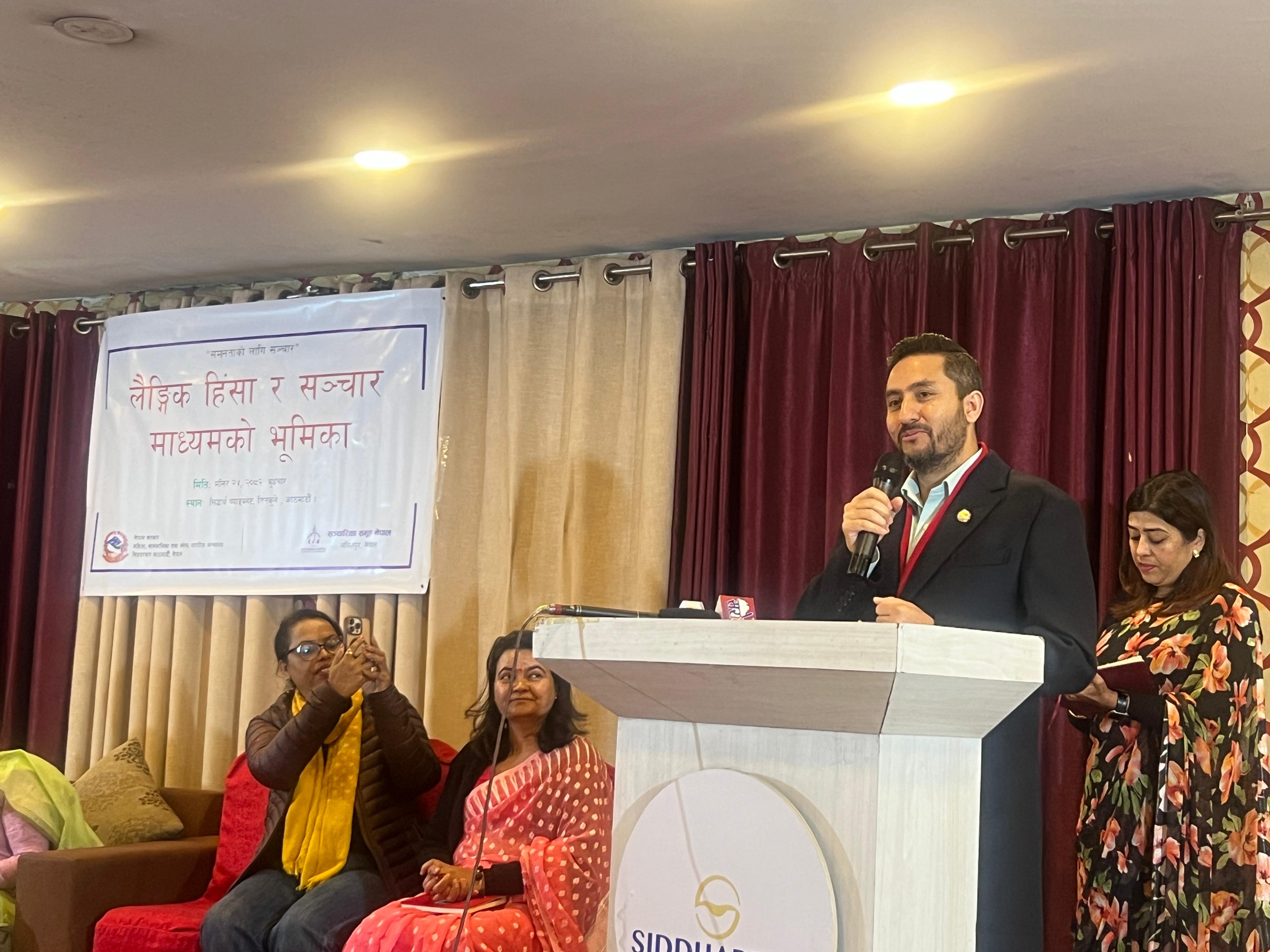 काठमाडौँ, मङ्सिर २४ – सञ्चार तथा सूचना प्रविधिमन्त्री जगदीश खरेलले डिजिटल माध्यमबाट हुने हिंसा न्यूनीकरणका लागि सबै गम्भीरतापूर्वक लाग्नुपर्ने बताएका छन्। सञ्चारिका समूह नेपालले बुधबार काठमाडौंमा आयोजना गरेको ‘लैंगिक हिंसा र सञ्चार माध्यमको भूमिका’ विषयक अन्तरक्रियामा मन्त्री खरेलले पत्रकार महिलाहरुको दोहोरो जिम्मेवारी रहेको बताएका छन्।